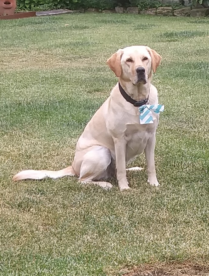 Nolja is our 3 ½ year old yellow lab.   Sal and I got her this past May from Golden Gate Labrador Retriever Rescue (GGLRR).  My husband had just retired and our yellow lab, Daisy, had died at 12 ½ years old just a couple of months prior.  Daisy was also from GGLRR and after she crossed the Rainbow Bridge, we both decided we would get another rescue.   We only had Daisy for about a year and a half since she was older, but she was a great companion and quite a personality.